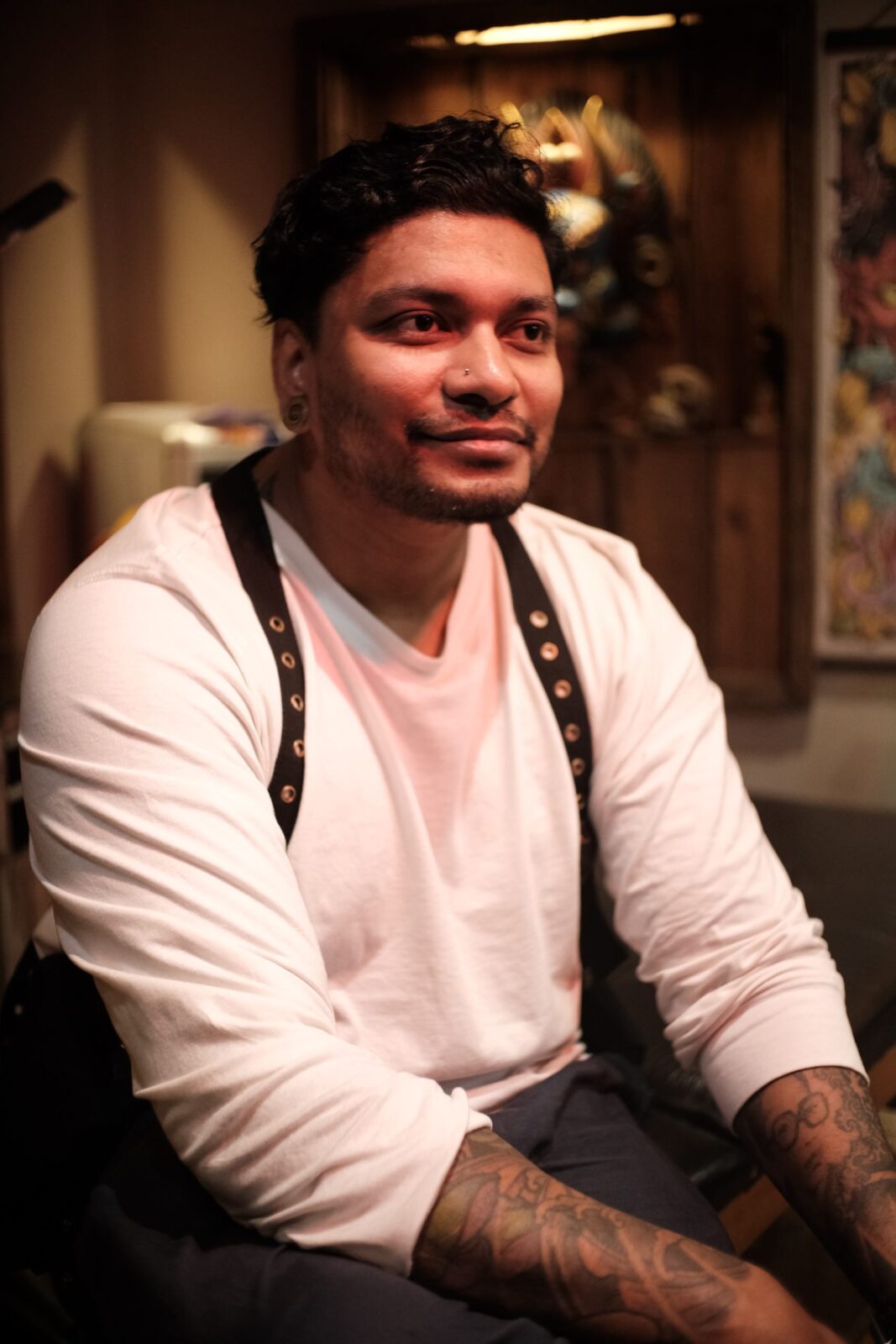 In diesem Interview spricht er über seine Leidenschaft für das Tätowieren, seinen Weg als Künstler und die Bedeutung der Bewahrung traditioneller indischer Tätowierungen.